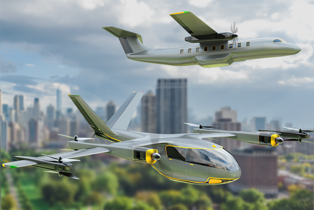 混合動(dòng)力AAM飛行器采用機(jī)載發(fā)電設(shè)備(例如氫燃料電池或小型燃?xì)廨啓C(jī))產(chǎn)生電力,供推進(jìn)系統(tǒng)和飛控系統(tǒng)、環(huán)控系統(tǒng)、電剎車和其他附件使用。區(qū)別于小區(qū)域內(nèi)短途空中交通,混動(dòng)飛行器更適合短途城際航線,可采用傳統(tǒng)固定翼飛機(jī)的起落模式或垂直起降模式?;靹?dòng)飛行器或能為節(jié)能減排做出巨大貢獻(xiàn),是航運(yùn)市場(chǎng)從傳統(tǒng)動(dòng)力飛機(jī)向全電飛機(jī)發(fā)展的重要過(guò)渡。
